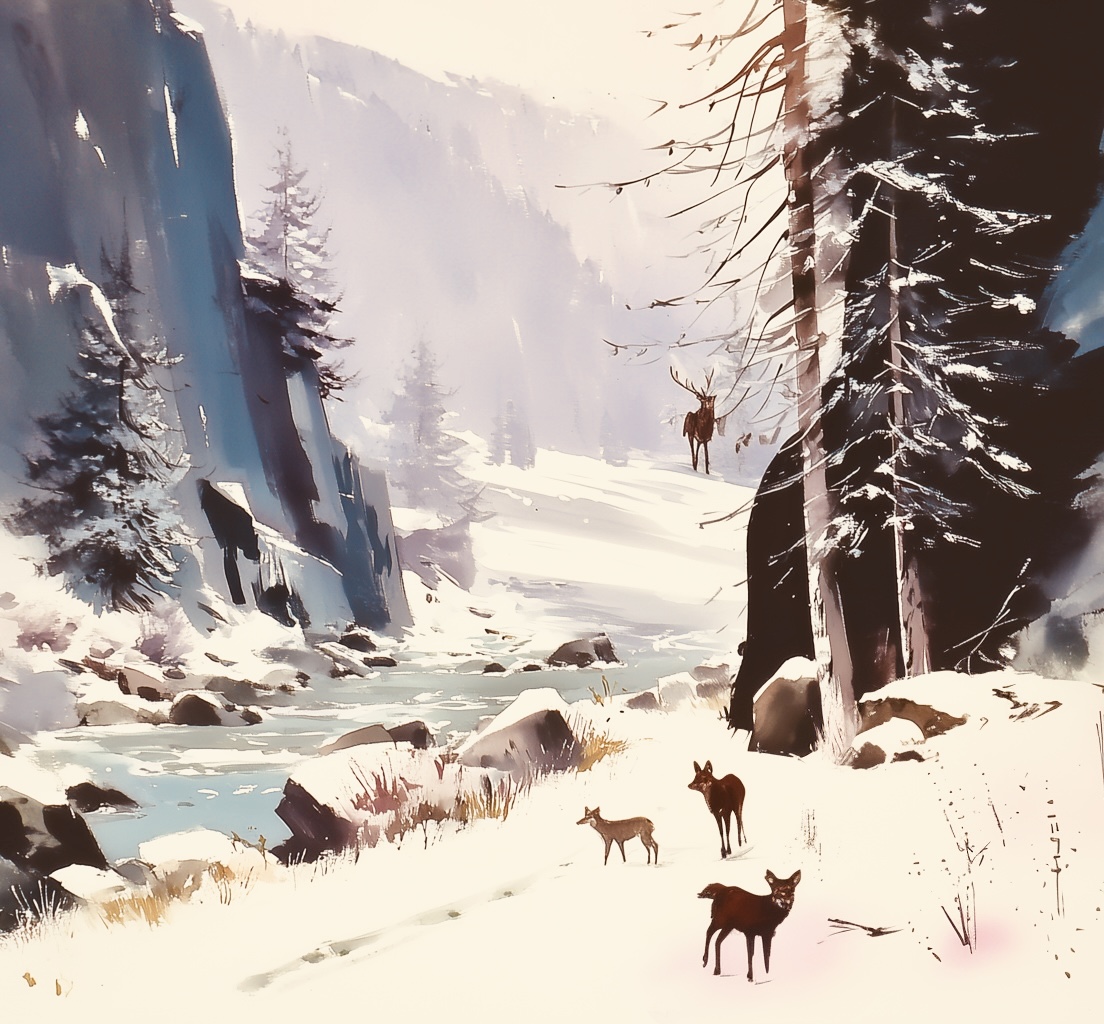 deer pause in thin light